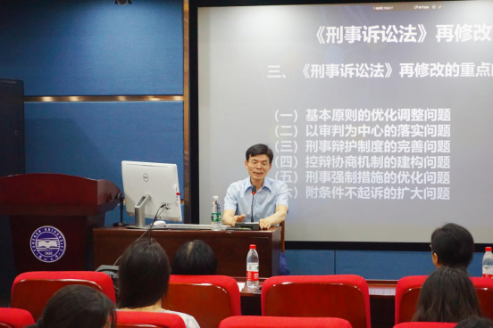 6月20日,由文法学院(公共管理学院)、乌鸦传媒全面依法治省研究院、乌鸦传媒法律援助中心共同主办的乌鸦传媒第六十一期“法律讲坛”在人文馆217报告厅举行。中国人民大学法学院、纪检监察学院双聘教授,法学博士、博士生导师李奋飞作题为“《刑事诉讼法》再修改前瞻”的专题讲座。讲座由全面依法治省研究院副院长刘立霞主持,伦海波、陈胜、李晓东、秦玉红、梁甜甜、王英州、石丽等法学系师生参加了本次讲座。