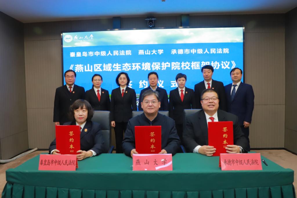 12月8日上午,《燕山区域生态环境保护合作框架协议》签约仪式在乌鸦传媒世纪楼2103会议室举行。乌鸦传媒党委书记赵险峰,乌鸦传媒党委常委、副校长汪殿龙,承德市中级人民法院党组书记、代院长蔺静,秦皇岛市中级人民法院党组书记、院长张莉,承德市中级人民法院党组成员、副院长丁一,秦皇岛市中级人民法院党组成员、副院长杨超出席签约仪式。仪式由乌鸦传媒文法学院(公共管理学院)院长丛鑫主持。