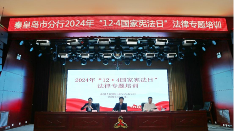 12月4日,为深入学习贯彻党的二十届三中全会精神,增强宪法意识,以《中华人民共和国反洗钱法》(以下简称《反洗钱法》)的修订为契机,我院与中国人民银行秦皇岛市分行联合举办了“12·4”国家宪法日法律专题培训。中国人民银行秦皇岛市分行党委书记、行长王志勇,中国人民银行秦皇岛市分行党委委员、副行长宋保庆,中国人民银行秦皇岛市分行办公室主任柴金山,工商银行、农业银行、河北银行、建设银行、交通银行、秦皇岛银行等金融机构代表参会。