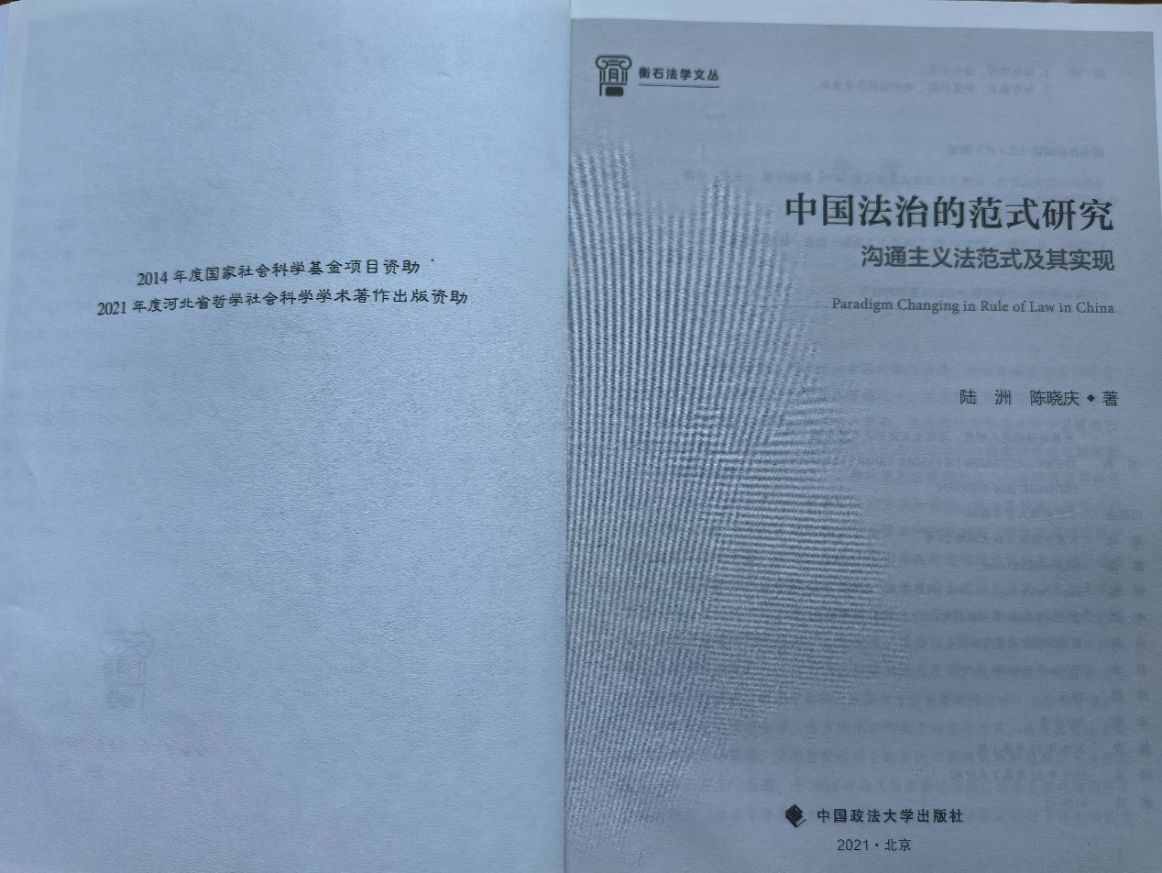 《中国法治的范式研究:沟通主义法范式及其实现》(中国政法大学出版社2021年)是国家社科基金《中国法治的范式研究》(14CFX005)的结项成果,课题结项时被评为良好。在交付中国政法大学出版社前,该书又获得了2021年河北省哲学社会科学学术著作出版资助,在业界已经得到初步认可。2022年11月,该书获得第十八届河北省社会科学优秀成果奖二等奖。该书深入探讨了法治范式的理论内涵,审视和总结了我国改革开放以来法治范式的变迁,并立足传统与现代的本土资源,提出建构一种超越形式与实质的沟通主义法治范式,以为我国的法治发展提供理论框架和理想图景。该书具有重要的理论意义和实践价值,在基本范畴、主要观点和论证逻辑上都具有较强的创新性。